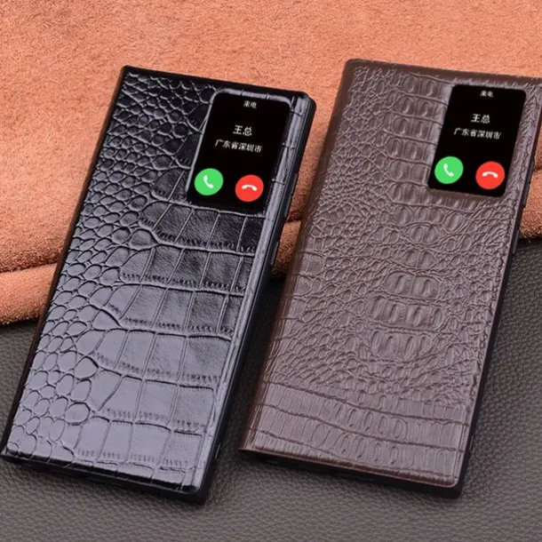 Phone Case For Samsung Galaxy S23 Ultra S22 Ultra Flip Cover Auto Sleep Wake Magnetic Warm Genuine Leather