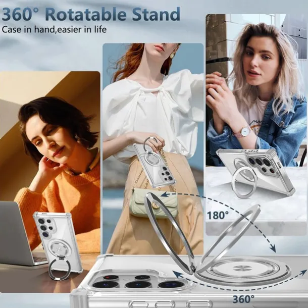 Phone Case For Samsung Galaxy S24 S24 FE S23 Ultra Plus S22 Plus Ultra Back Cover with Stand Holder Magnetic Shockproof Retro PC
