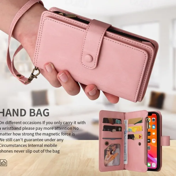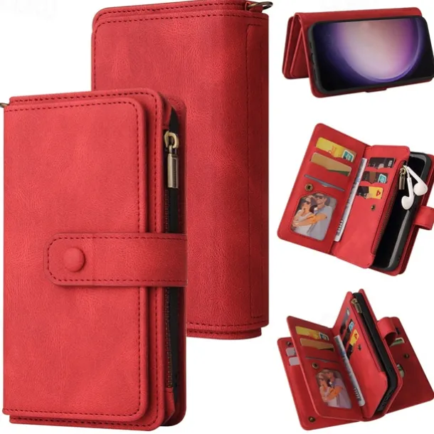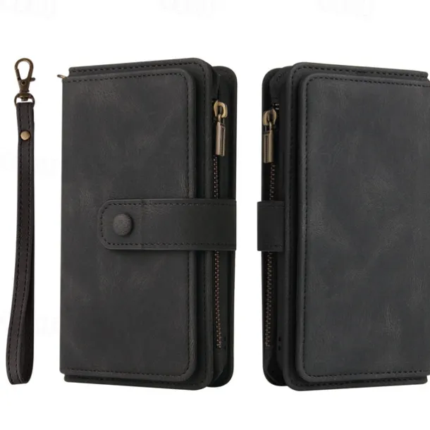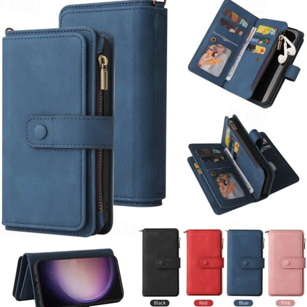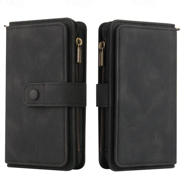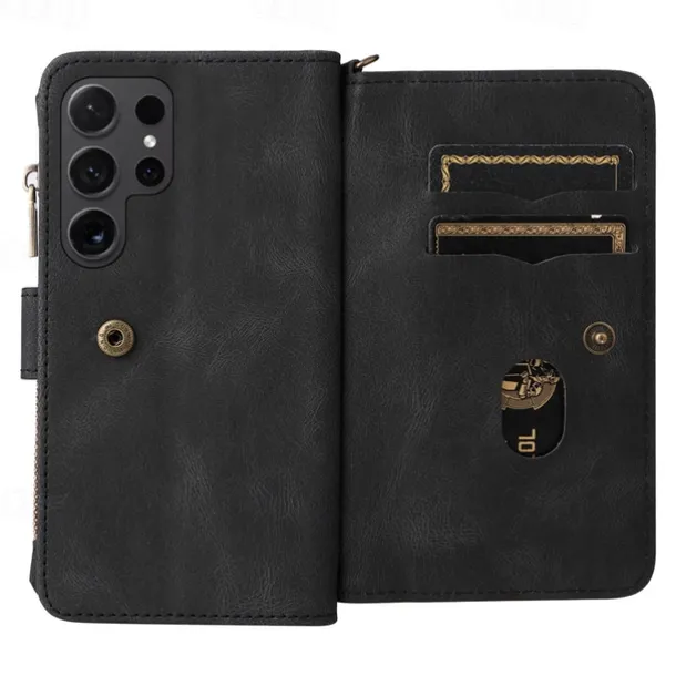 Phone Case For Samsung Galaxy S25 S24 S23 S23 FE S22 S21 Ultra Plus A55 5G A35 5G A25 A15 Wallet Case Zipper Full Body Protective with Wrist Strap Retro TPU PU Leather