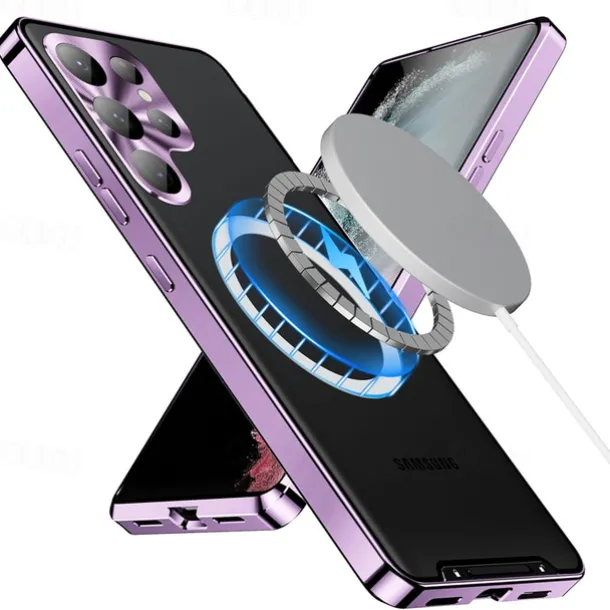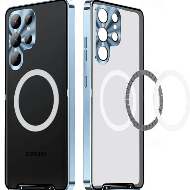 Phone Case For Samsung Galaxy S25 S24 S23 S23 FE S22 S21 Ultra Plus Magnetic Adsorption With Magsafe Camera Lens Protector Support Wireless Charging Shockproof Acrylic Aluminum Alloy