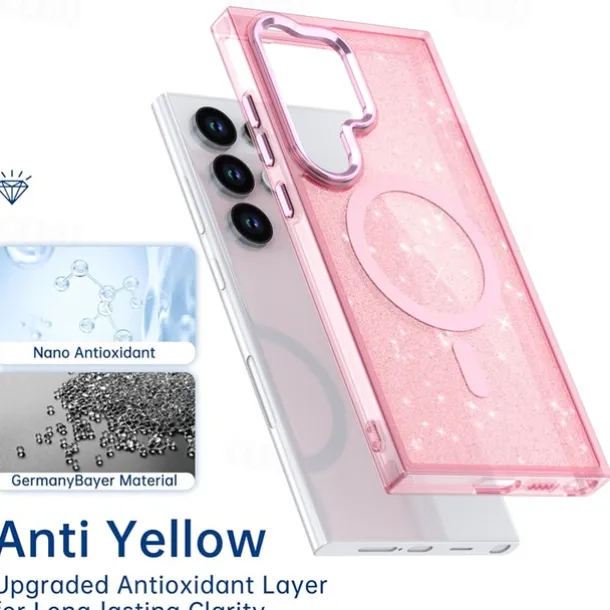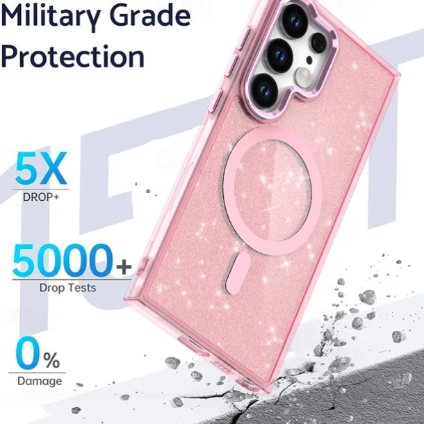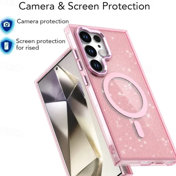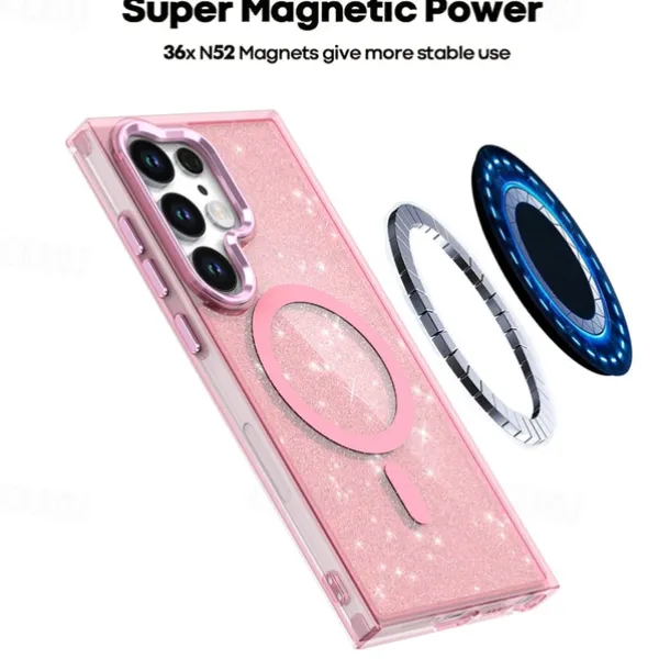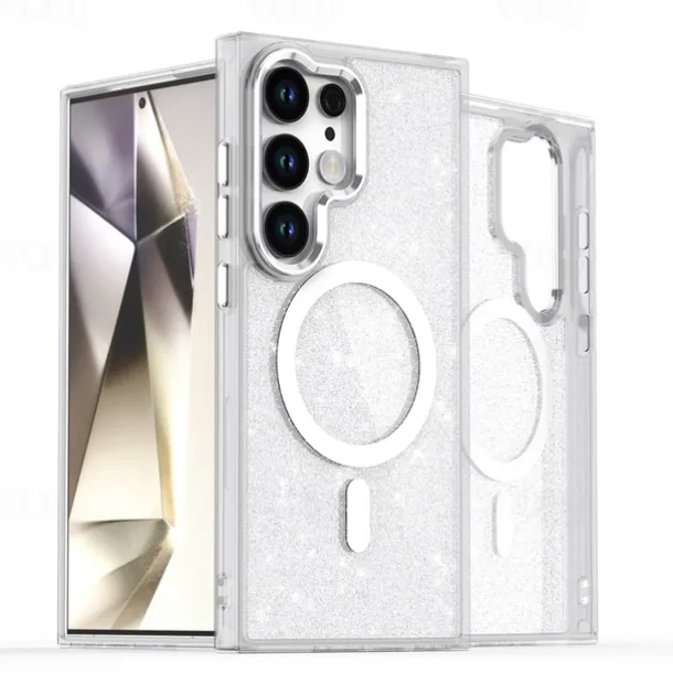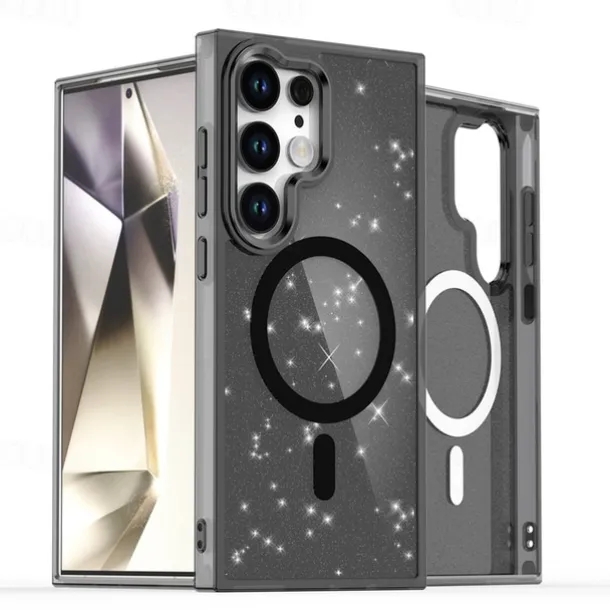 Phone Case For Samsung Galaxy S25 S24 S24 FE S23 Ultra Plus A55 5G A35 5G A25 Back Cover Magnetic Bling Glitter Shiny Shockproof Retro PC Silicone