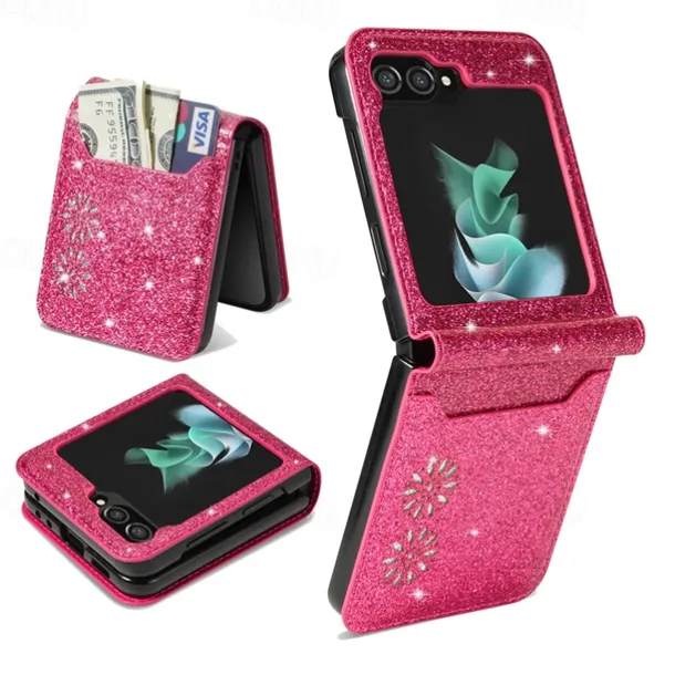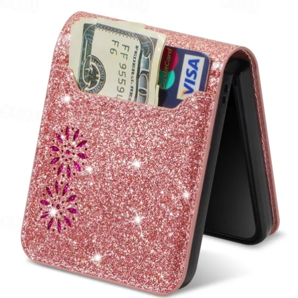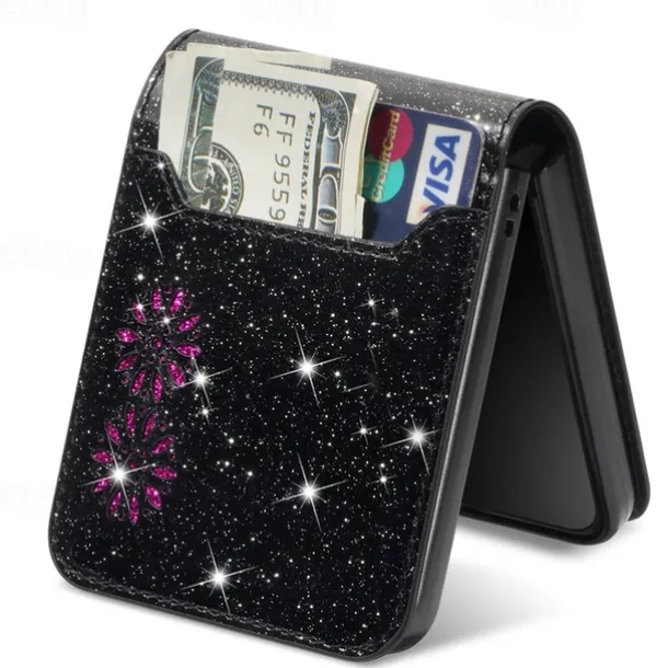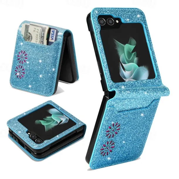 Phone Case For Samsung Galaxy Z Flip 7 Z Flip 6 Z Flip 5 Z Flip 4 Z Flip 3 Flip Cover Bling Glitter Shiny Card Slot Shockproof Retro sky PC PU Leather