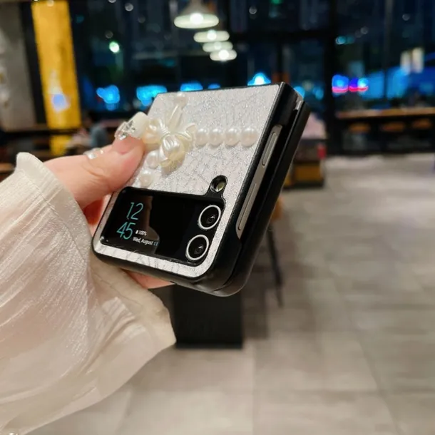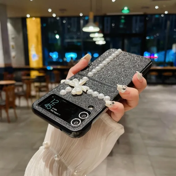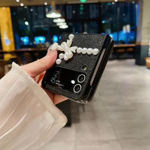 Phone Case For Samsung Galaxy Z Flip 7 Z Flip 6 Z Flip 5 Z Flip 4 Z Flip 3 for Women Girl Bling Glitter Shiny Shockproof Bow tie TPU