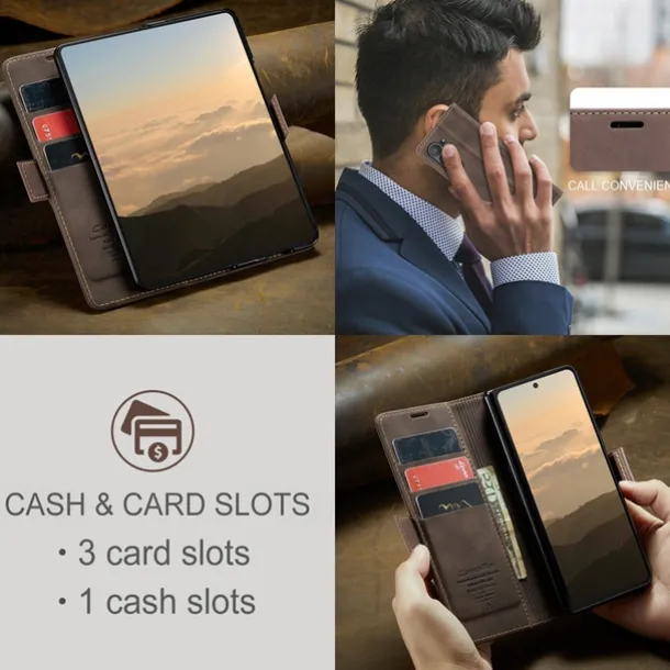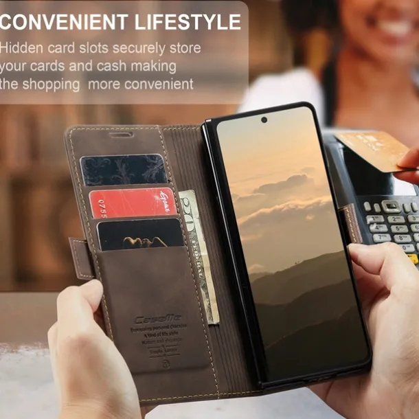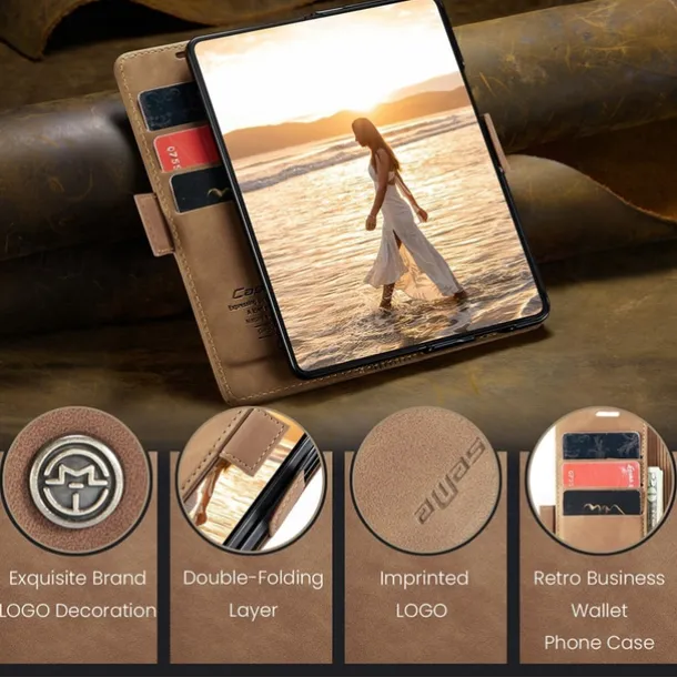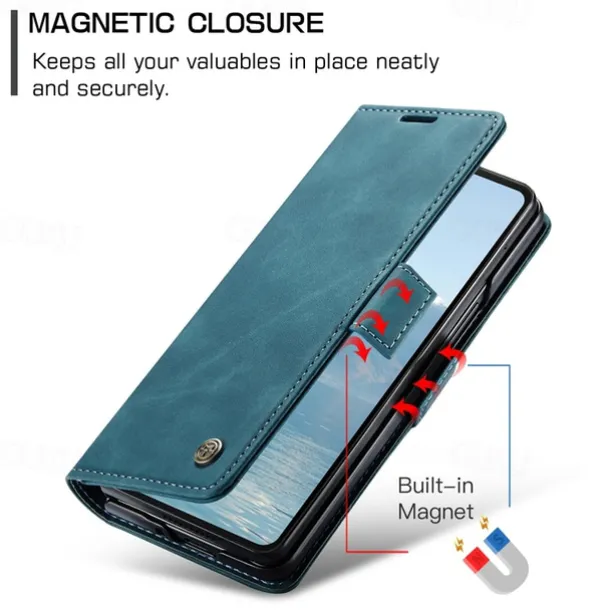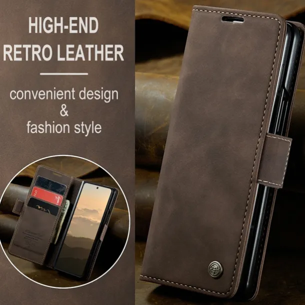 Phone Case For Samsung Galaxy Z Fold 7 Z Fold 6 Z Fold 5 Z Fold 4 Flip Cover with Stand Holder Magnetic Card Slot Retro TPU PU Leather