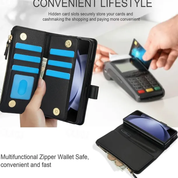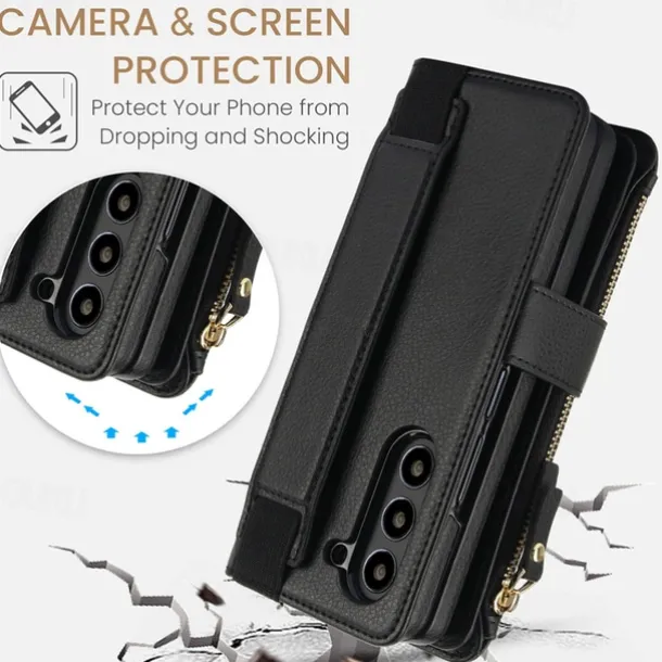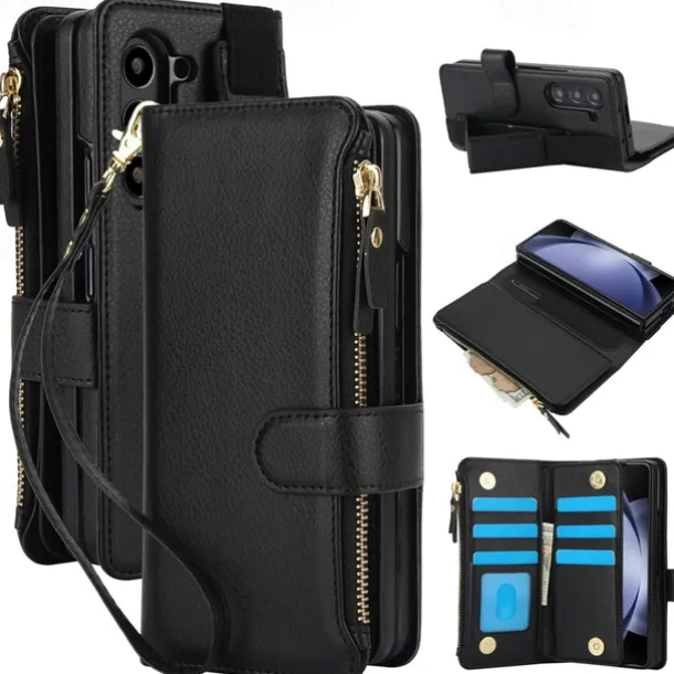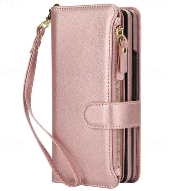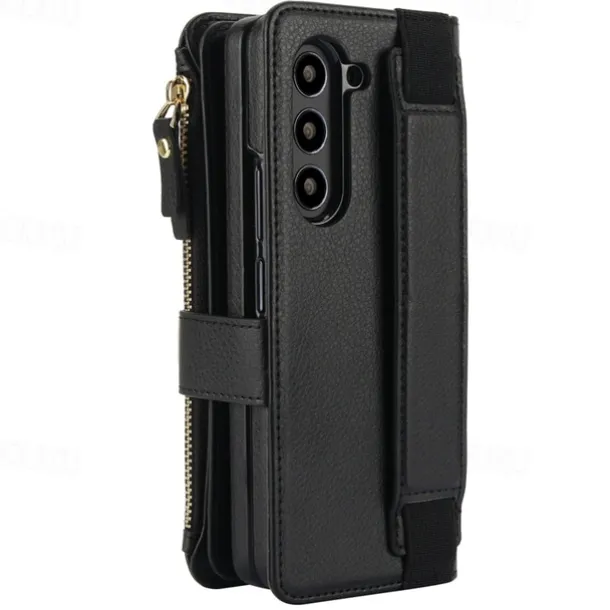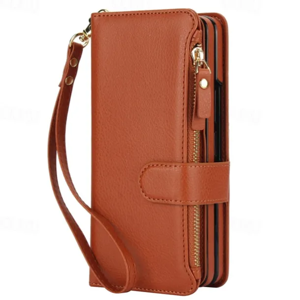 Phone Case For Samsung Galaxy Z Fold 7 Z Fold 6 Z Fold 5 Z Fold 4 Z Fold 3 Wallet Case with Stand Holder Magnetic Zipper Retro TPU PU Leather