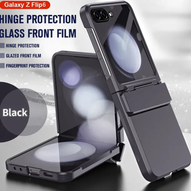 Phone Case For Z Flip 6 Z Flip 5 Back Cover with Screen Protector Shockproof Retro TPU PC