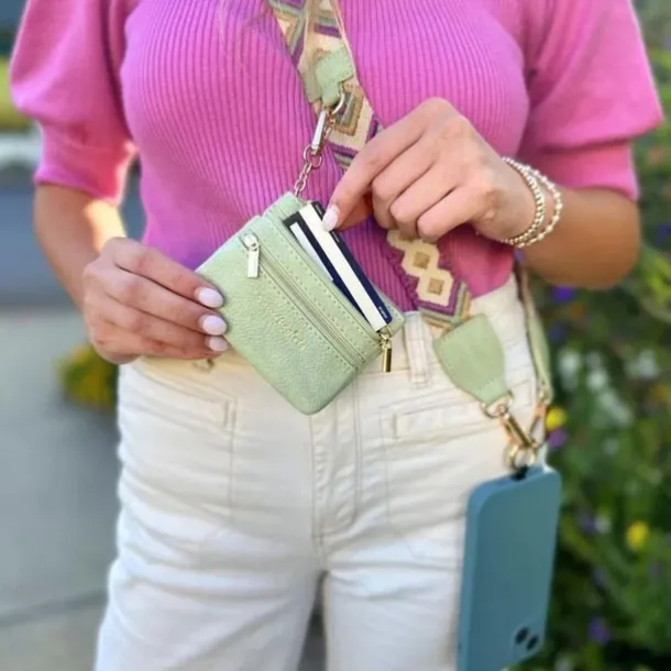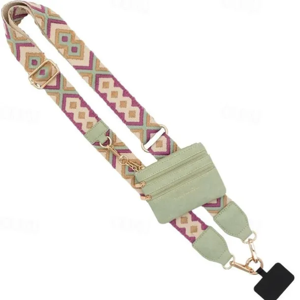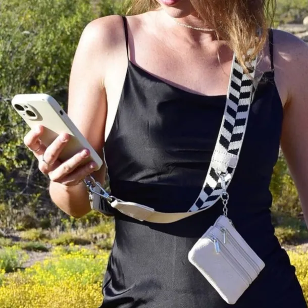 Phone Strap with Zippered Pouch Adjustable Nylon Canvas Crossbody Lanyard Detachable Wristlet & Innovative Hanging Phone Card