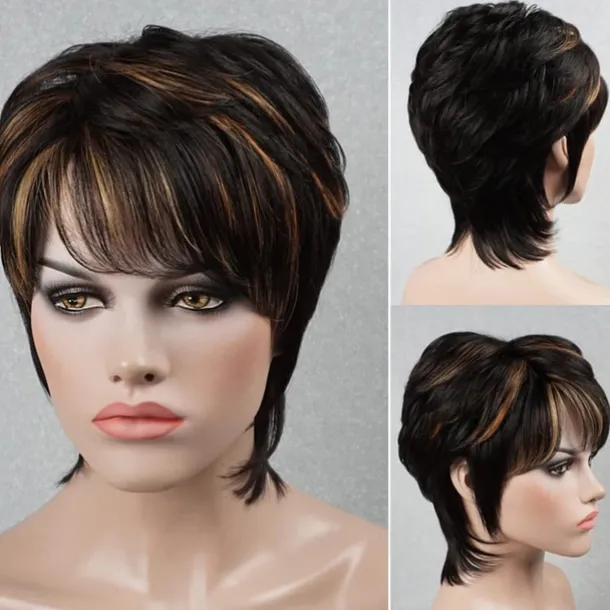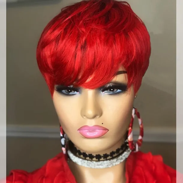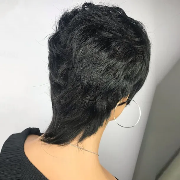 Pixie Cut Wig for Black Women 100% Virgin Human Hair None Lace Front Layered Wigs with Bangs Brazilian Real Human Hair Short Pixie Wigs for Black Women Daily Use Natual Black Color