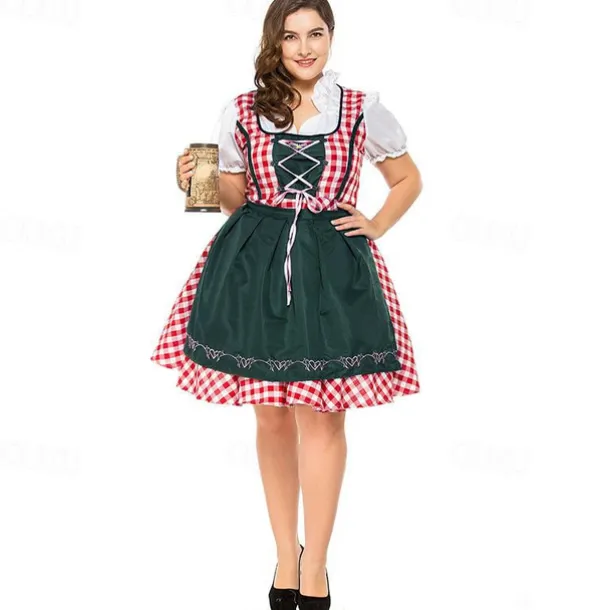 Plus Size Oktoberfest Traditional German Beer Girl Costume Dirndl Blouse Trachtenkleider Apron 3PCS Munich Bavarian Costume