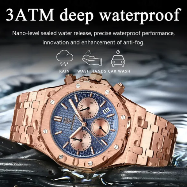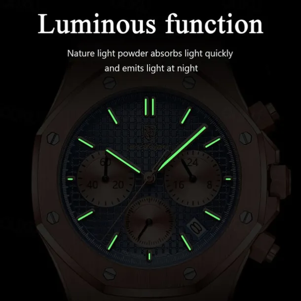POEDAGAR Men Quartz Watch Outdoor Sports Fashion Casual Luminous Calendar Chronograph Waterproof Steel Watch