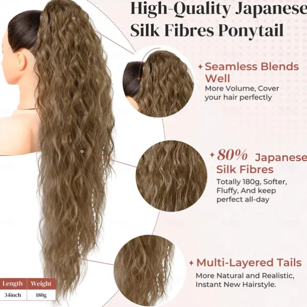 Ponytail Extension Long Wavy Drawstring Ponytail Extensions Softer Lighter Import Synthetic Clip in Hair Extensions Natural Looking Hairpiece for Women
