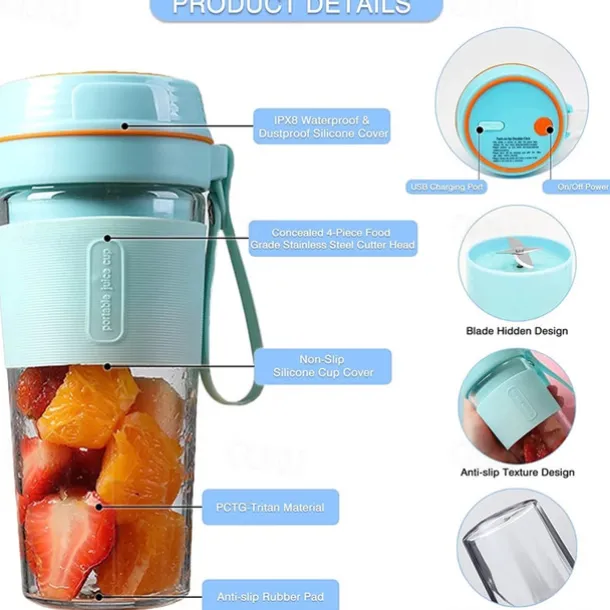 Portable Electric Juicer Smoothie Blender 4 Knife Mini Blenders USB Wireless Rechargeable Mixer Juicers Cup for Sports Travel