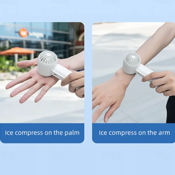 Portable Foldable Handheld & Tabletop Fan, Cold Compress Mode, 5-Speed Wind Settings, USB-C Rechargeable, Built-in Carabiner, Anti-Slip Base, Cooling & Fan Dual Mode