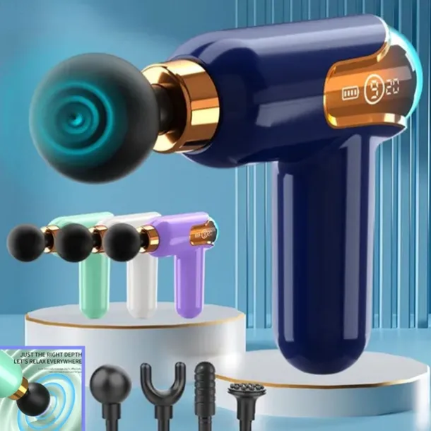 – 4 Massage Heads: The massage gun includes a spherical massage head for large muscle groups, a U-shaped massage head for the neck and cervical spine, a cylindrical massage head for deep tissue impact, and a flat massage head for various muscle relaxation and shaping purposes.