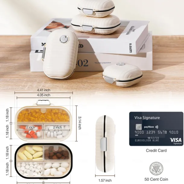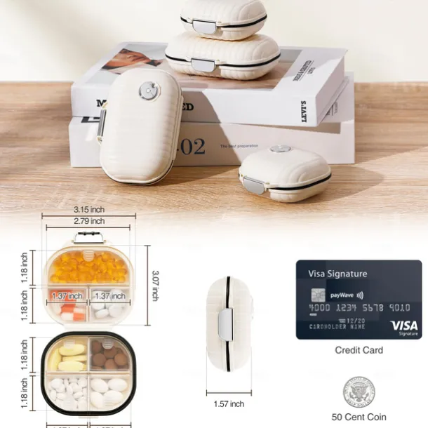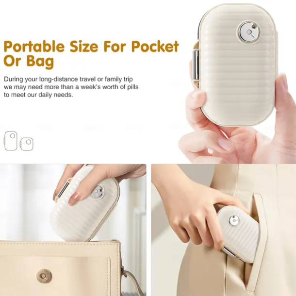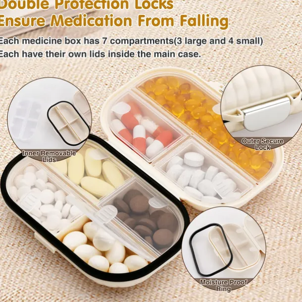 Portable Travel Pill Storage Box with 7 Labeled Compartments – Small Medicine Organizer for Pocket or Wallet, Daily Vitamin and Supplement Holder