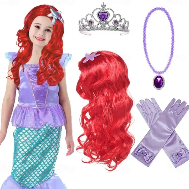 Princess Mermaid Wig Ariel Braid with Princess Tiara Necklace Gloves Not Including Dress Princess Mermaid Ariel Dress Up Cosplay Accessories for Kids Girls Halloween Wigs
