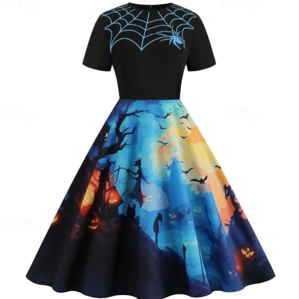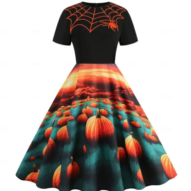 Pumpkin Skull Skeleton Spider Web Halloween Dress Flare Dress Punk & Gothic Sexy Costume Dress Up Adults’ Women’s Masquerade Dailywear Easy Halloween Costumes Dress Up