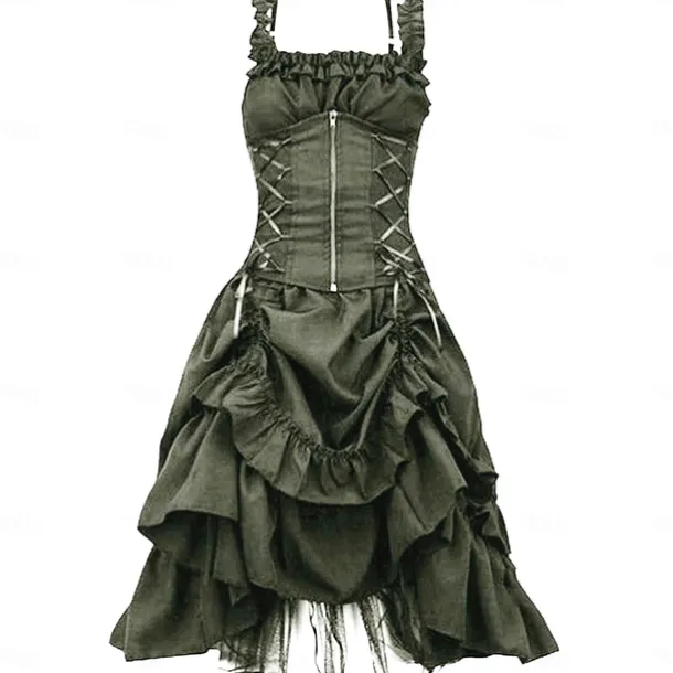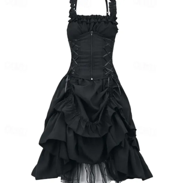 Gothic medieval vacation dress for gothic style fan lolita fan and any cosplay fan. Suitable for all kinds of occasions, such as Halloween, Prom party and it’s also a perfect OOTD for daily wearing. The size of chest can be adjusted by bandage. Suitable for all shapes.