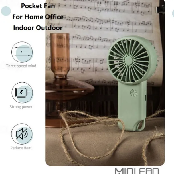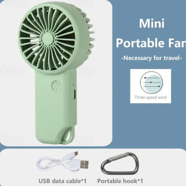 Quiet Mini Handheld Fan – USB Rechargeable 3-Speed Small Pocket Fan for Home, Office, and Outdoor Use