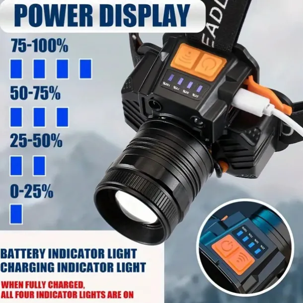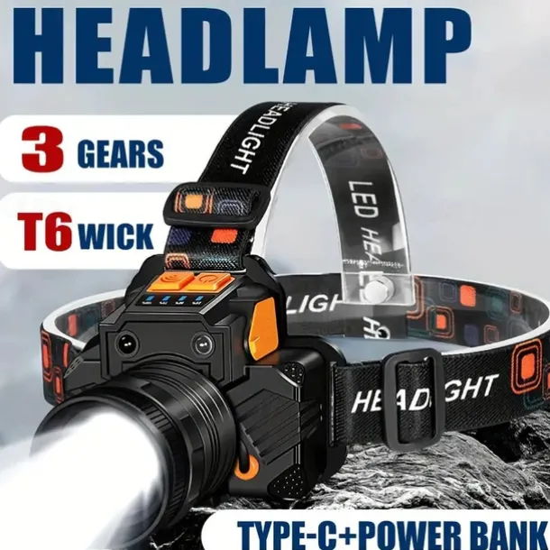 Rechargeable Headlamp with Motion Sensor – 2000 Lumens USB Head Light with Power Bank for Camping, Hiking & Outdoor Use