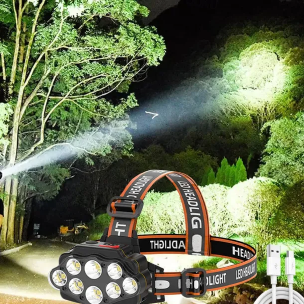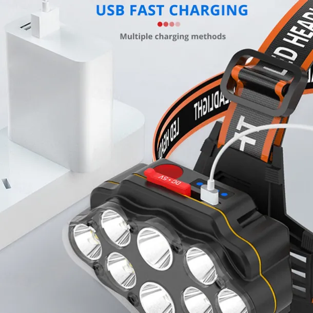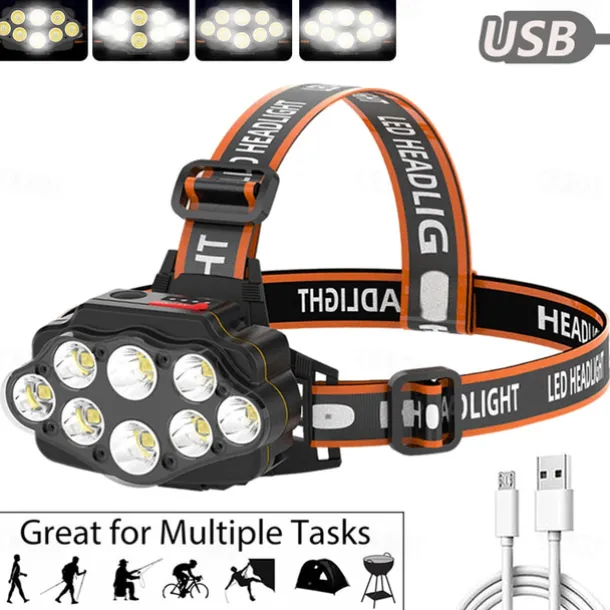 Rechargeable LED Headlamp Wide Range Lighting Headlights 4 Lighting Modes 8*XPG Camping Lantern Powerful Headlamp Fishing Lamp