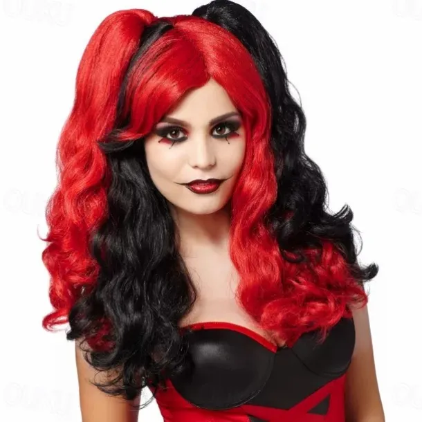 Red and Black Jester Wig Halloween Cosplay Party Wigs