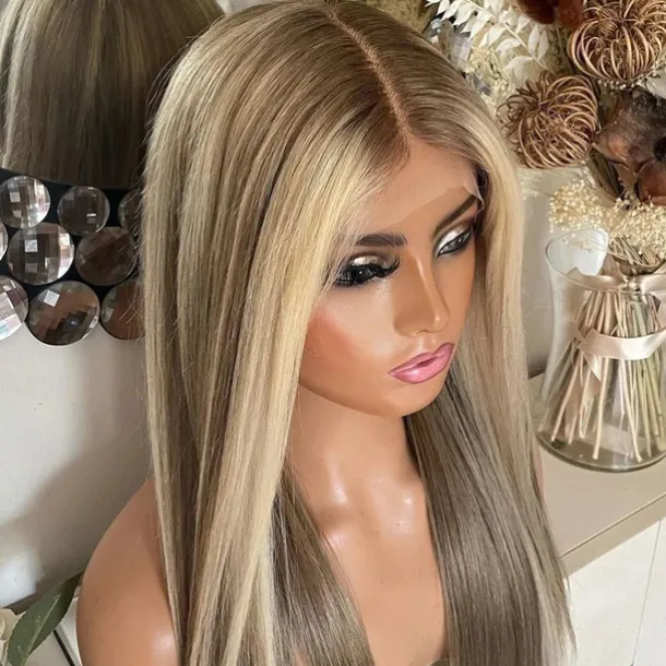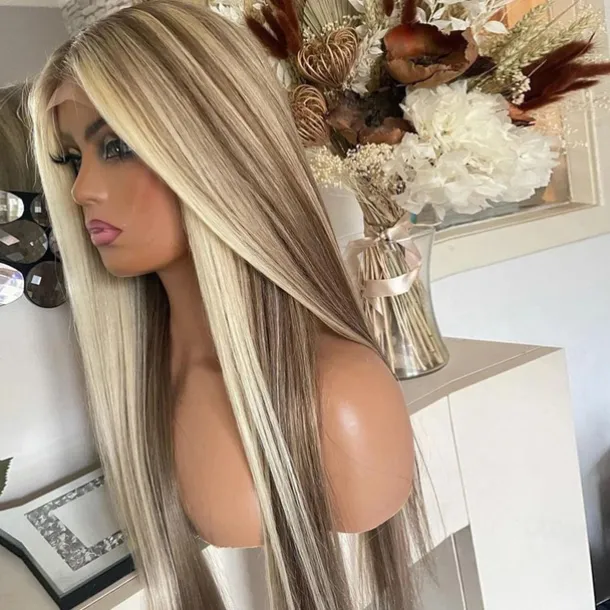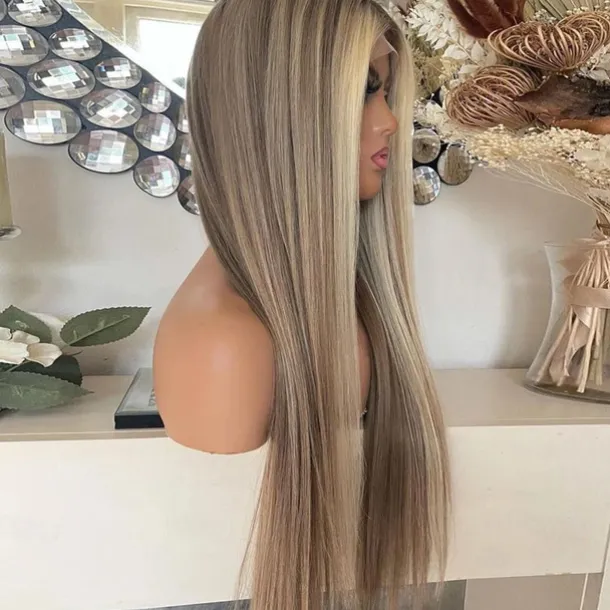Remy Human Hair 13×4 Lace Front Wig Middle Part Brazilian Hair Silky Straight Multi-color Wig 130% 150% Density with Baby Hair Highlighted / Balayage Hair With Bleached Knots Pre-Plucked For Women