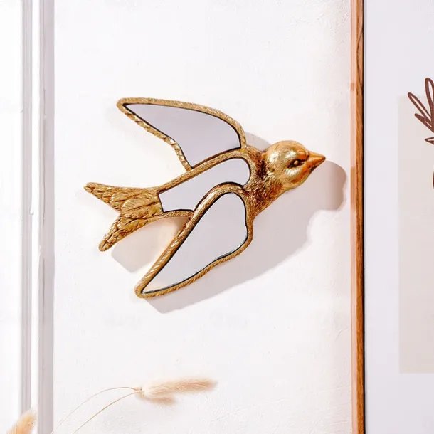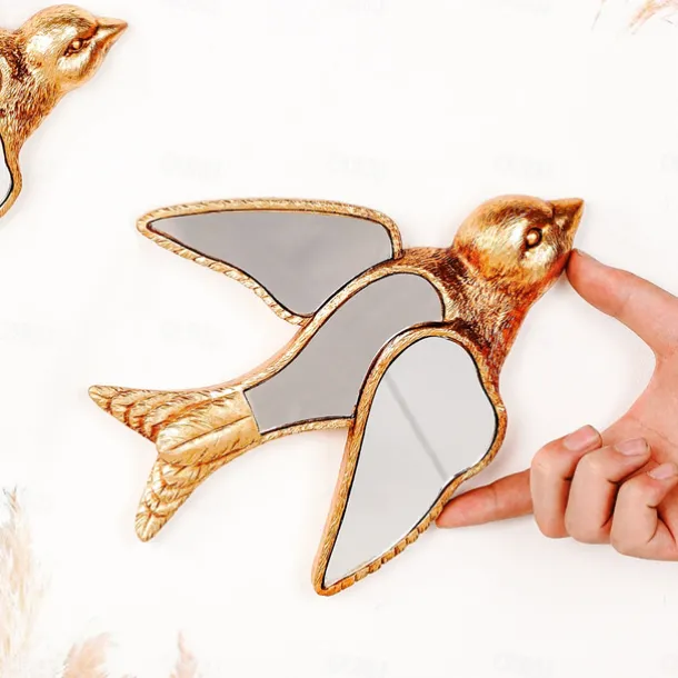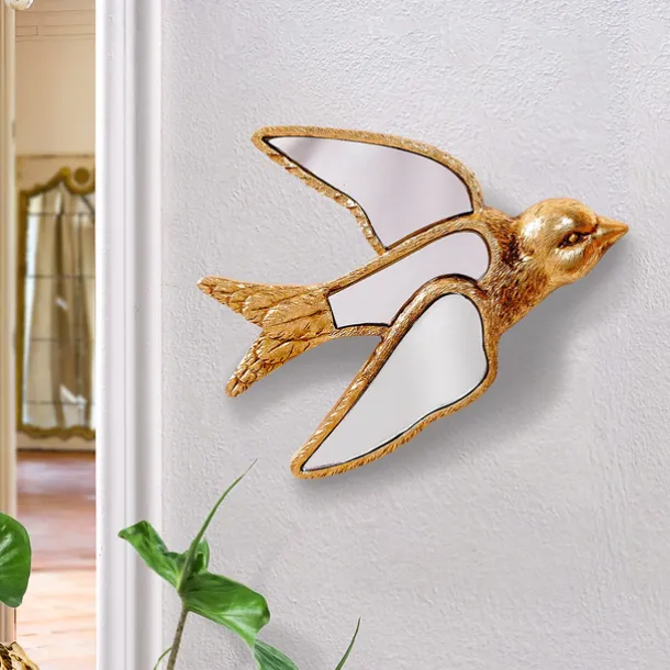 Resin Gold Swallow Sculpture, Home Decor Craft, Wall Hanging 5.7-7 Inches, Mirror Inlaid Surface, Unique Design for Bird Lovers, Collectible Item for Family Parties and Insect Exhibits