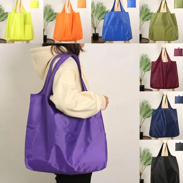 Reusable Nylon Tote Bag – Lightweight Foldable Shopping Bag with Large Capacity for Women, Men, Grocery, Travel & Daily Use