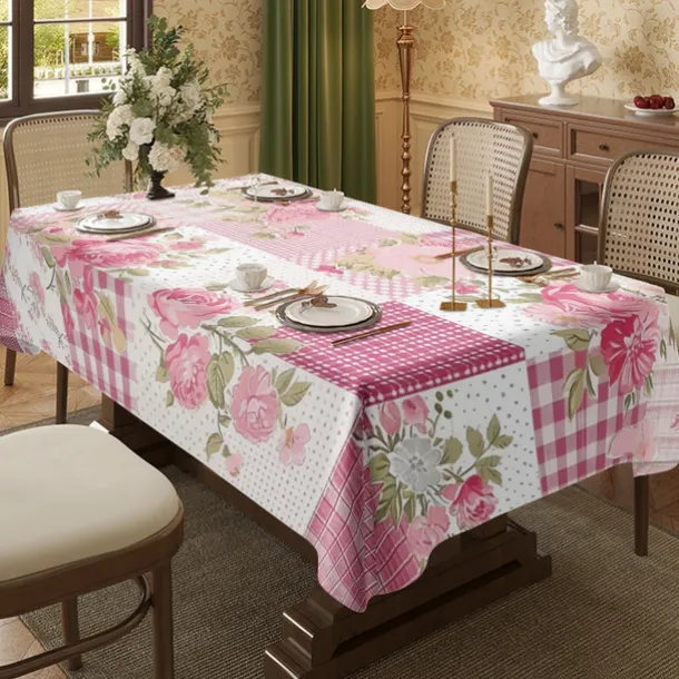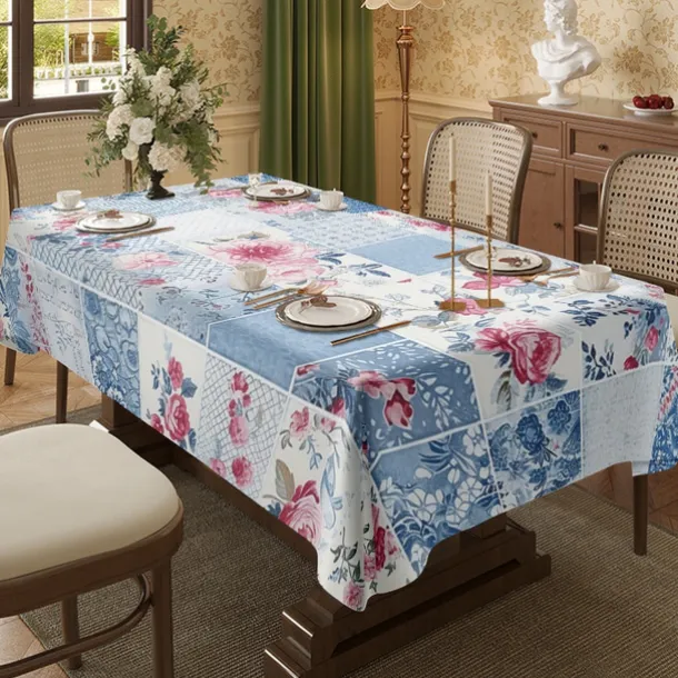 Rural American Floral Pattern Print Rectangle Tablecloth Waterproof Rectangular Table Cloth for Kitchen Dining