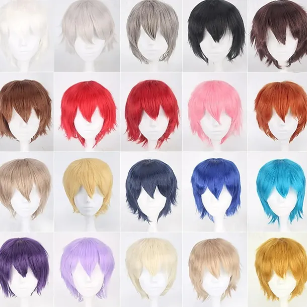 s Cosplay Wigs For Men And Women Heat Resistant Fiber Anime Wig 12Inch Halloween Wigs