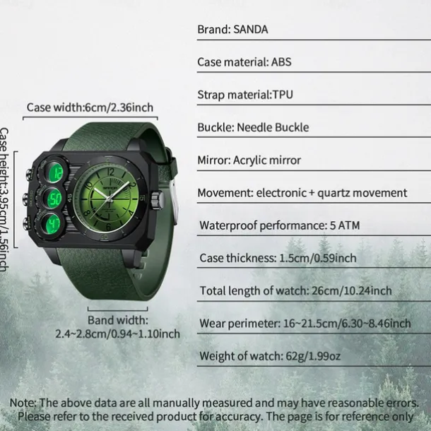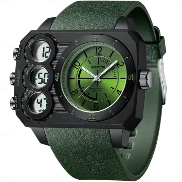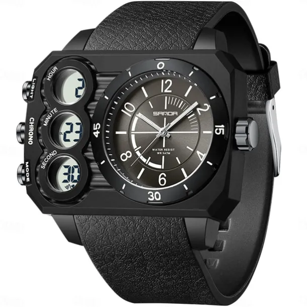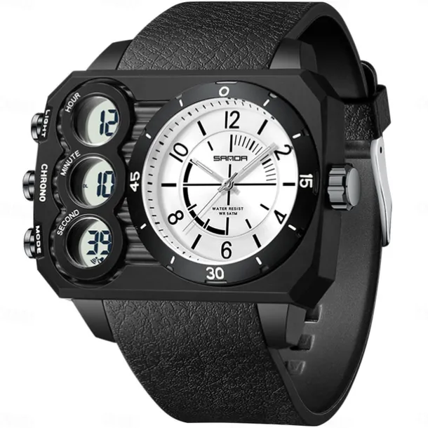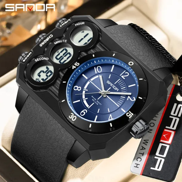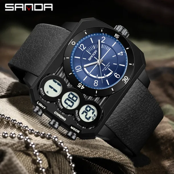 SANDA Men Digital Watch Outdoor Fashion Casual Wristwatch Luminous Alarm Clock Three Time Zones Calendar TPU Watch