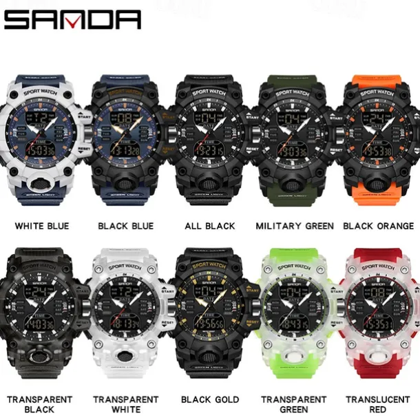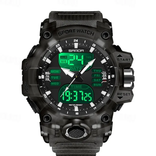 SANDA Men Digital Watch Outdoor Sports Fashion Business Luminous Alarm Clock Calendar Chronograph Silicone Watch