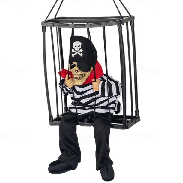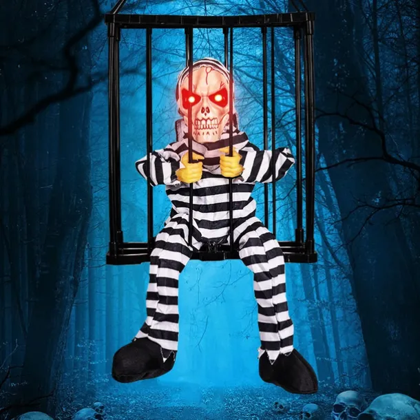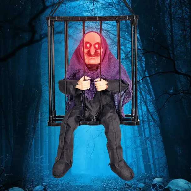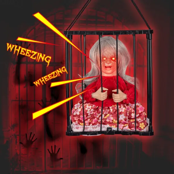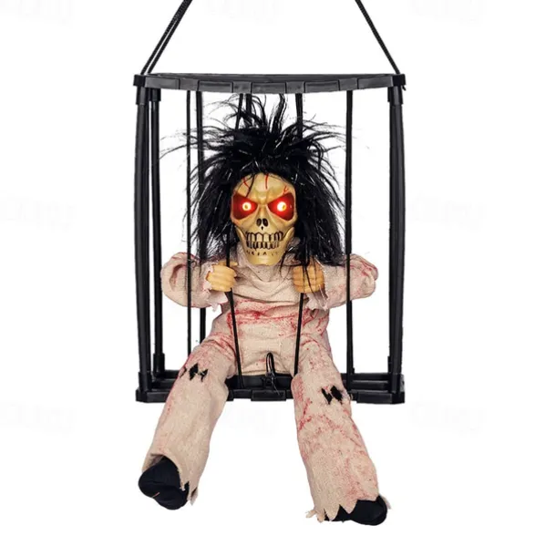 Scary Cage Halloween Doll Haunted House Prop with Screaming Voice Nightmare Creature