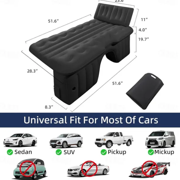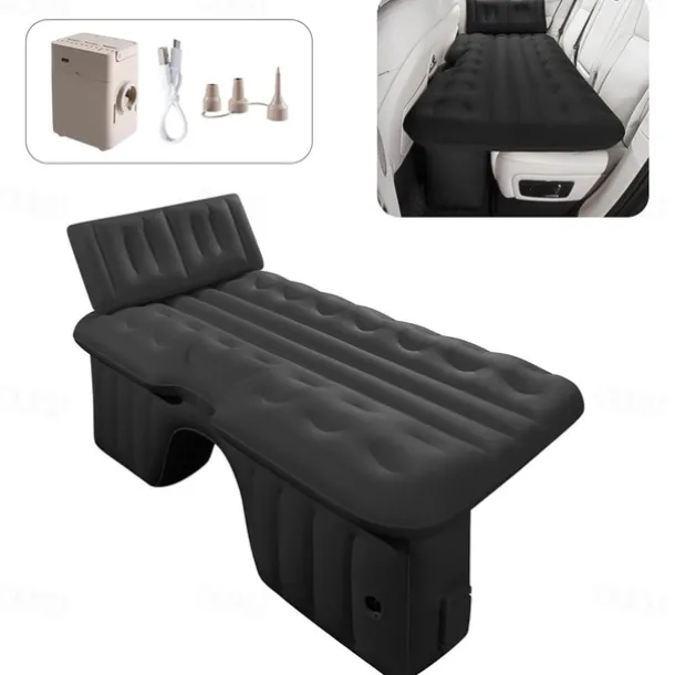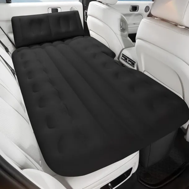 Self-Inflating Air Mattress Car Back Seat Bed PVC Flocked Surface Car Air Couch Cushion Built-in Charging Pump for Rapid Inflation and Deflation