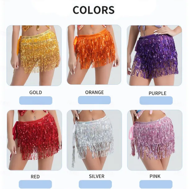 Sequin skirt Sparkle Skirt Belly Dance Hip Scarf Mardi Gras Outfits for Women Space Cowgirl Costume