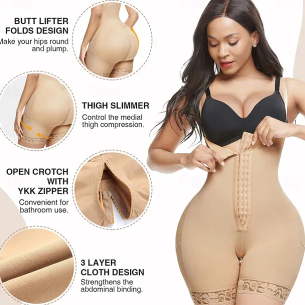 Shapewear for Women Tummy Control Body Shaper Butt Lifter Thigh Slimmer Faja Plus Size with Zipper Crotch