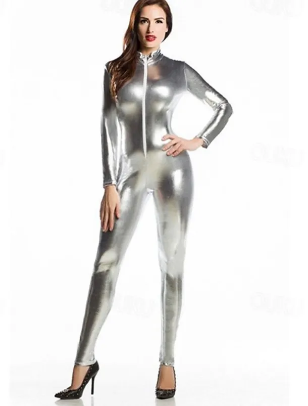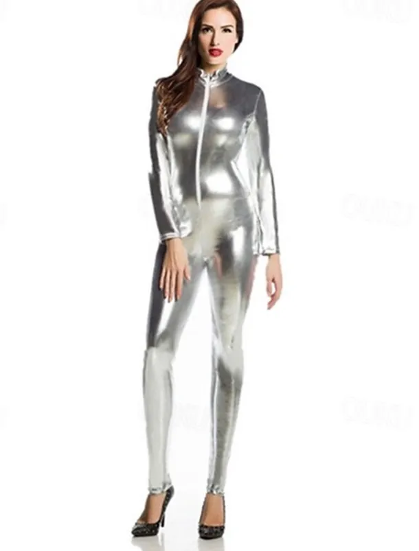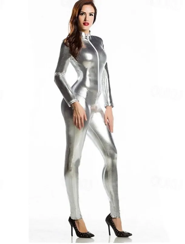 Shiny Zentai Suits Cosplay Costume Catsuit Carnival Costume Full Body Suit Men’s Women’s Sex Sexy Costume Solid Colored Spandex Latex Costume for Halloween Masquerade Adults’
