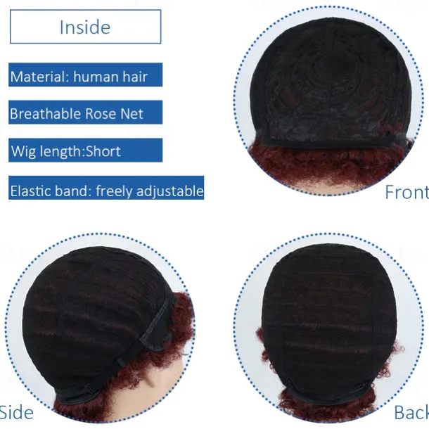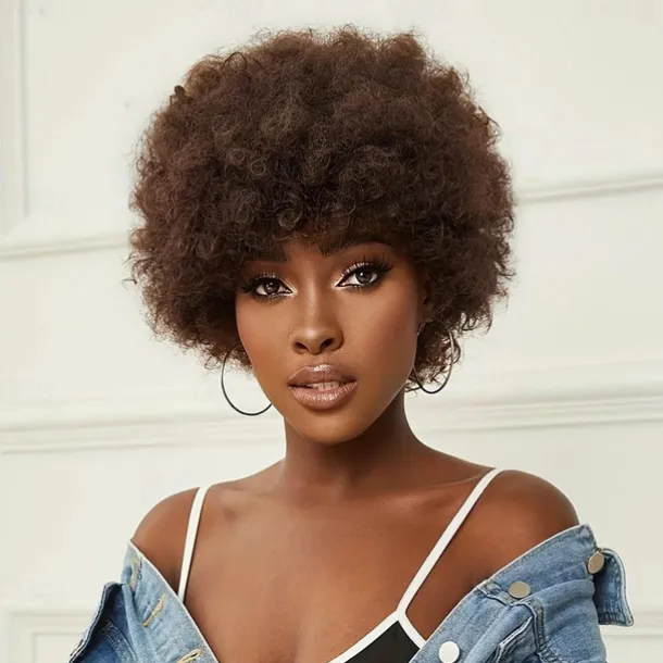 Short Curly Wigs for Black Women Human Hair Afro Kinky Curly Wig Brazilian Virgin Pixie Cut Wig Human Hair With Bangs 150% Density None Lace Front Bob Wigs