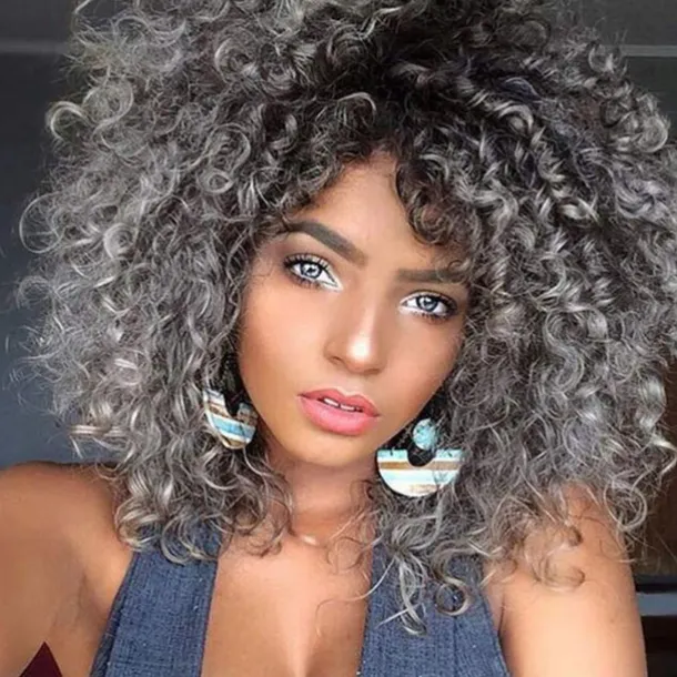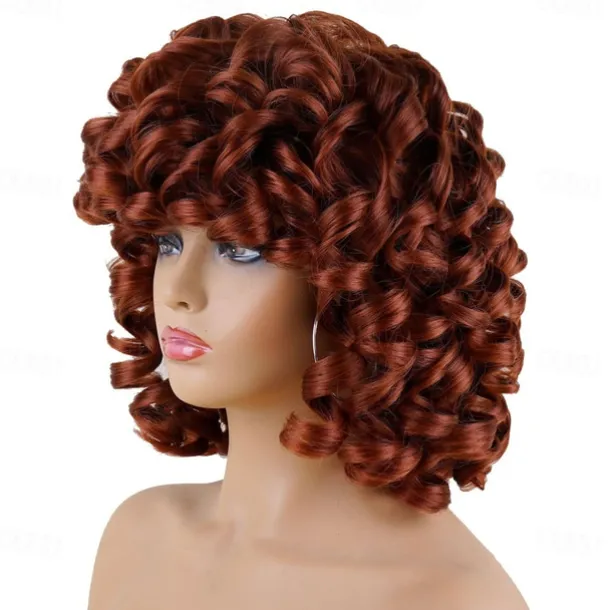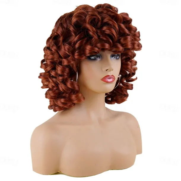 Short Curly Wigs for Black Women Soft Black Big Curly Wig with Bangs Afro Kinky Curls Heat Resistant Natural Looking Synthetic Wig for African American Women Christmas Party Wigs