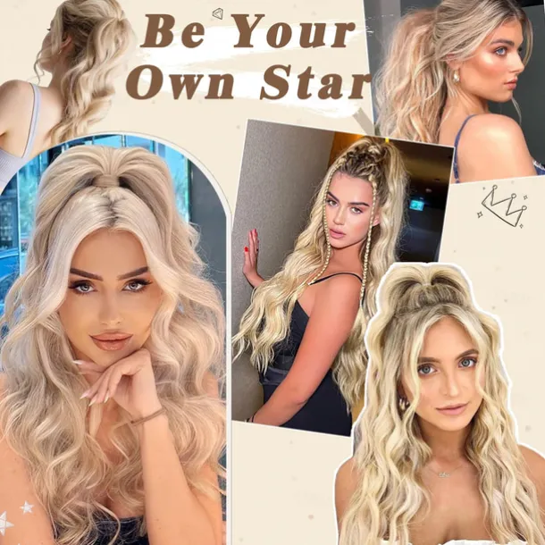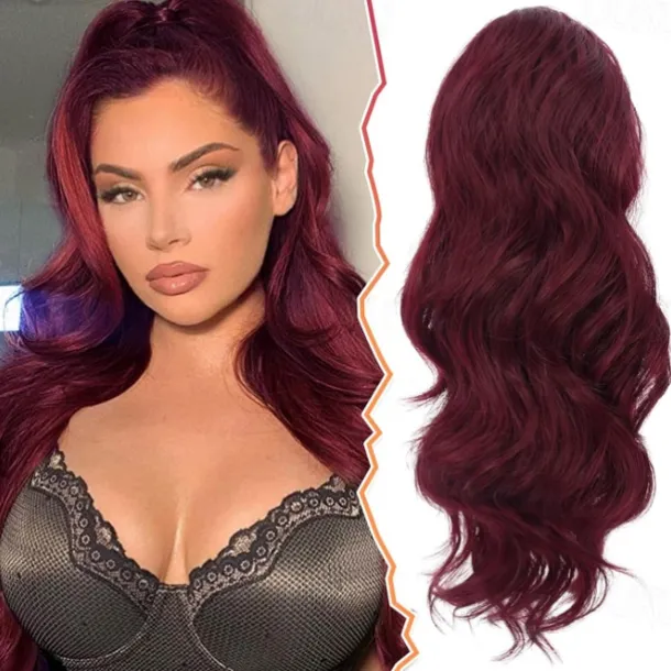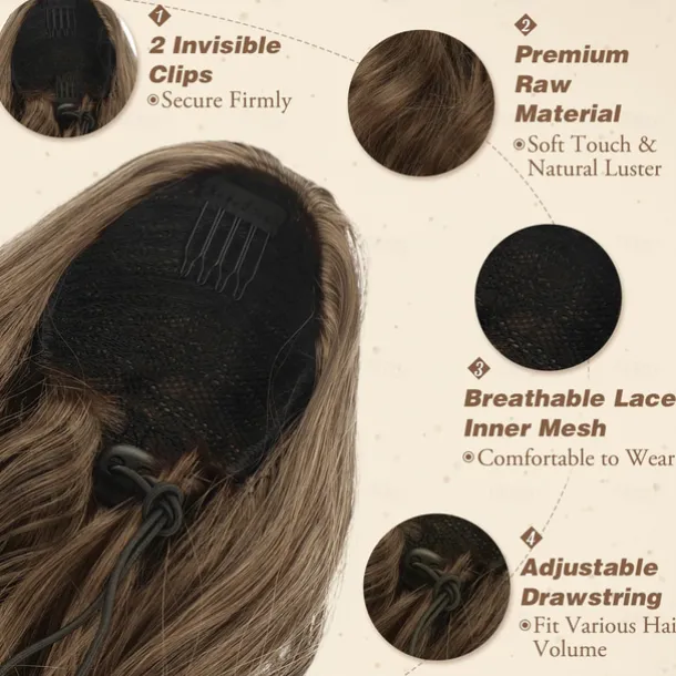Short Drawstring Ponytail Extension, 16 In Wavy Ponytail Hair Extensions Synthetic Clip in Pony Tail Hairpieces Fake Ponytail for Women Girls Daily Halloween