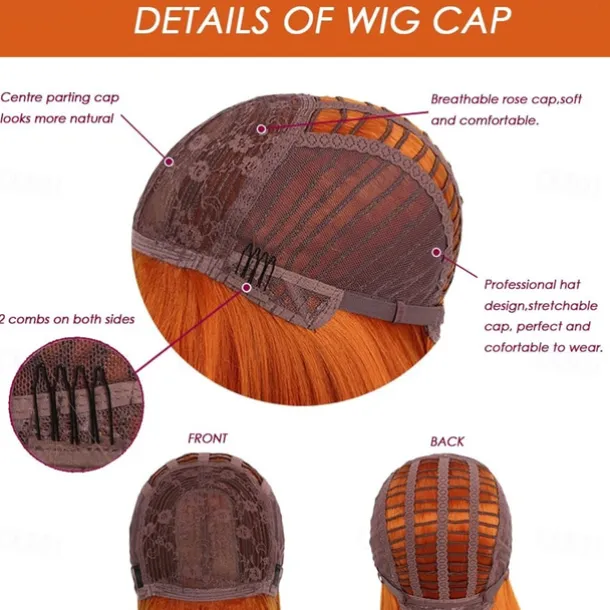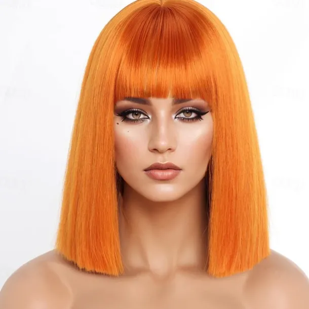 Short Orange Bob Wigs with BangsShort Straight Bob Orange Wigs for Women Hair Bob Cut Wig Shoulder Length WigNatural Looking Cosplay Daily Party Wig Halloween Christmas Party Wigs