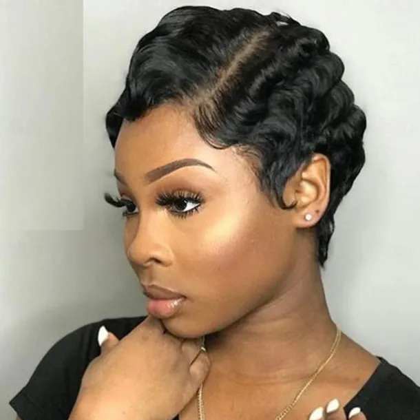 Short Wigs Human Hair Wigs For Women Pixie Cut Human Hair Finger Wave Wig Natural Color Glueless Human Hair Wig Machine Made