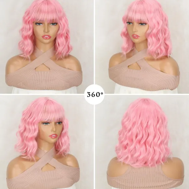 Short Wigs with Bangs Short Wigs for Women Synthetic Wavy Wig Shoulder Length Halloween Cosplay Party Wigs