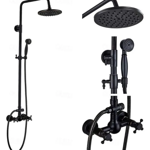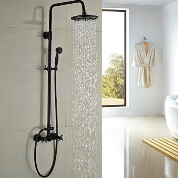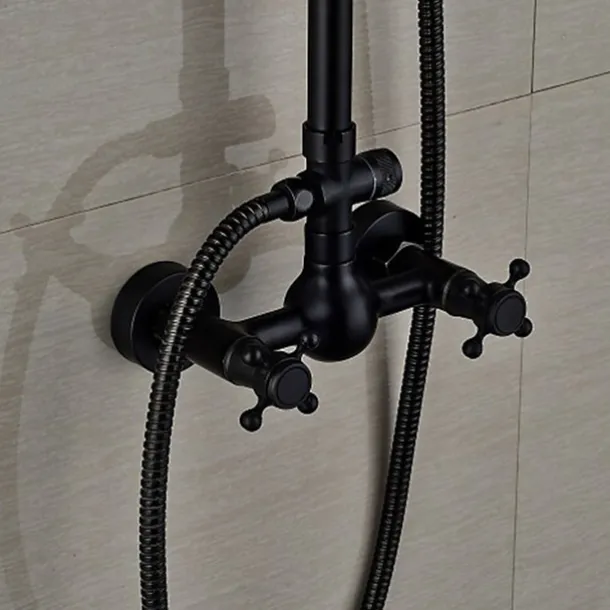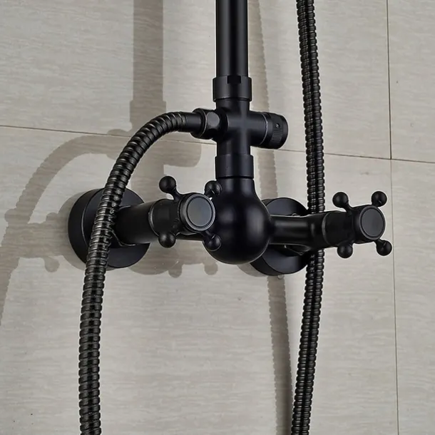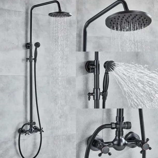 Feature: Black shower fittings set 8 & quot; Brass rain shower head bath Spo
