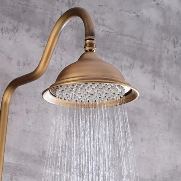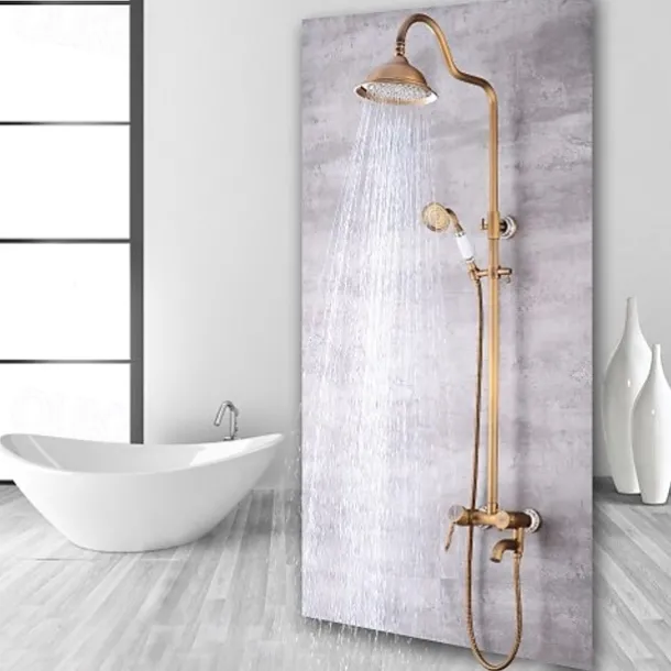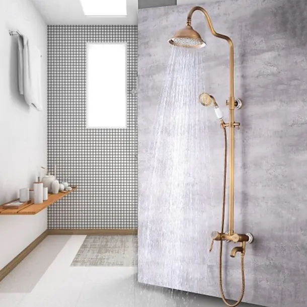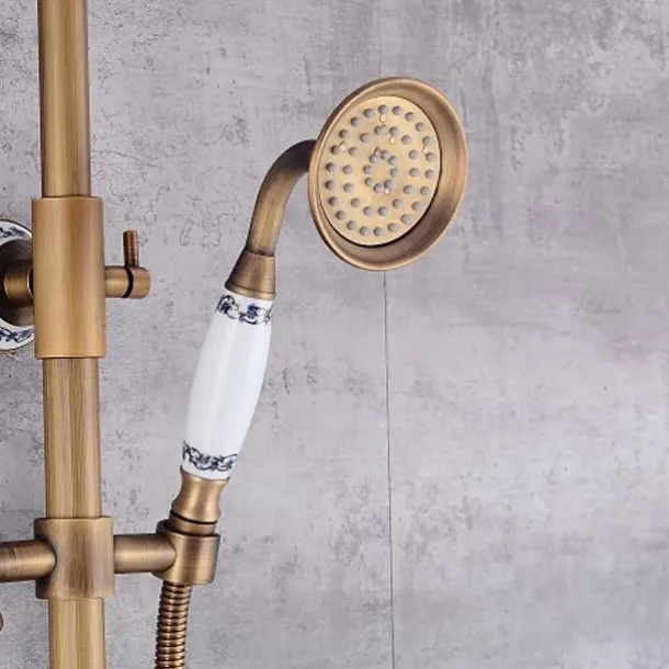 Shower Faucet,Shower System Set – Handshower Included pullout Waterfall Vintage Style / Country Antique Brass Mount Outside Ceramic Valve Bath Shower Mixer Taps