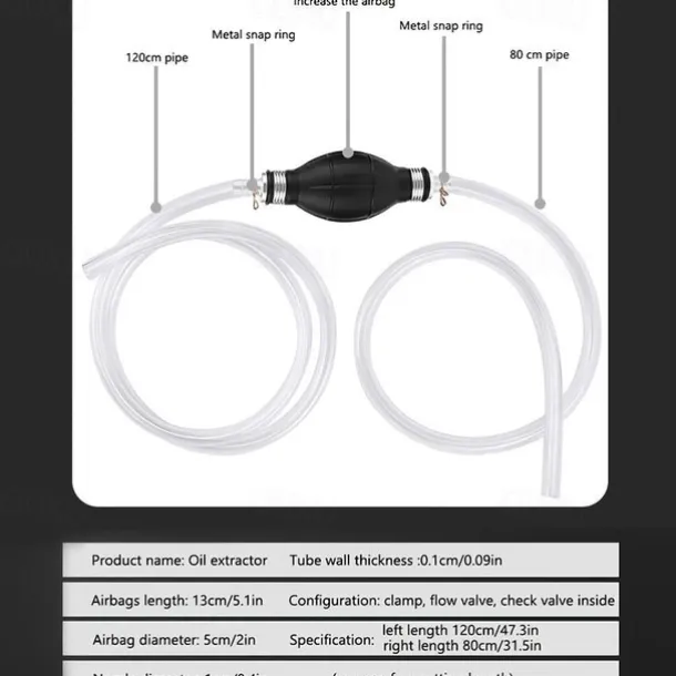 Siphon Pump, Portable High Flow Siphon Hand Pump For Gas Gasoline Petrol Diesel Oil Liquid Water Fish Tank With 2 Durable PVC Hoses