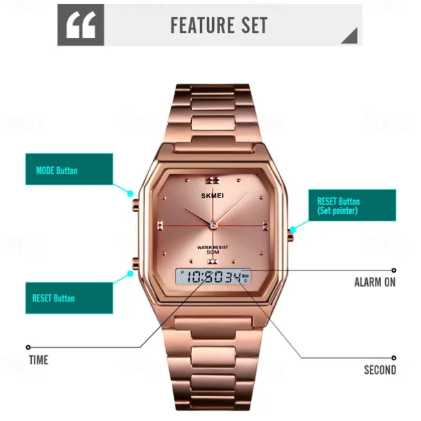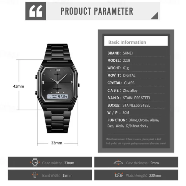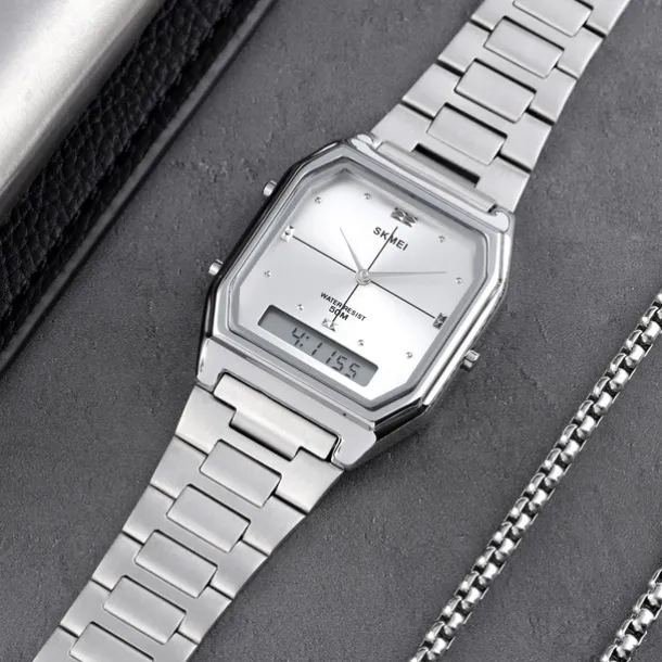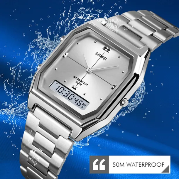 SKMEI Men Digital Watch Fashion Casual Wristwatch Stopwatch Calendar Date Week Waterproof Steel Watch
