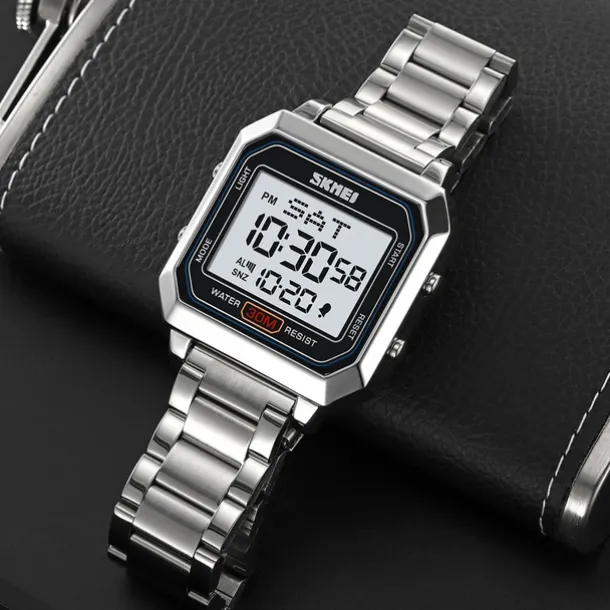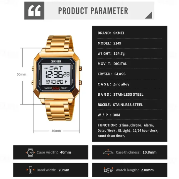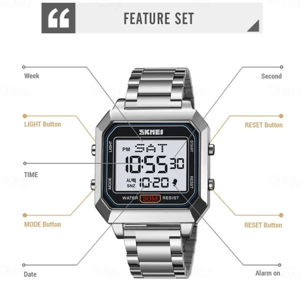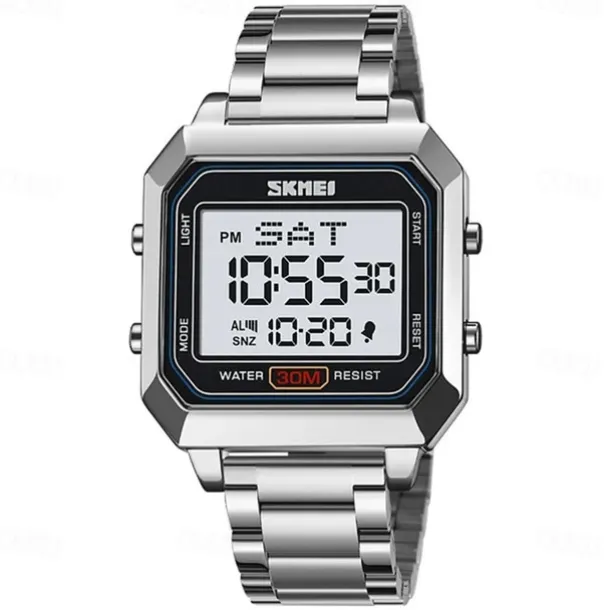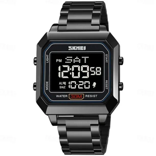 SKMEI Men’s Electronic Square Steel Band Student Multi functional Sports Waterproof Night Glow Electronic Watch 2149