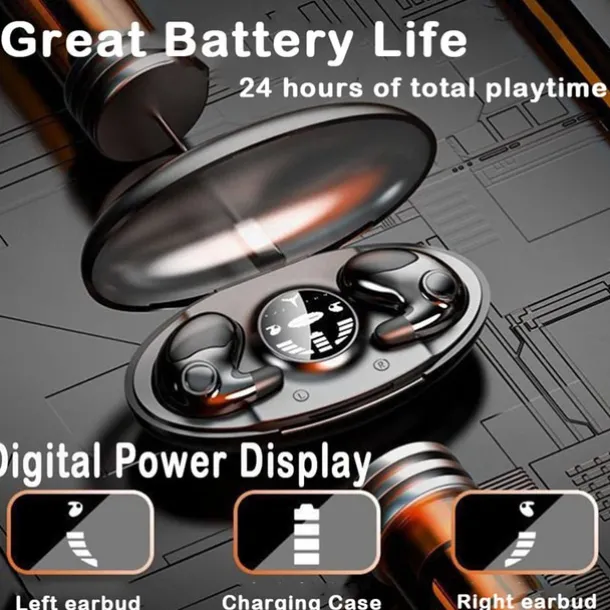 【Long Battery Life】Charge in 1 hour, use with charging box for 24 hours of continuous playback, standby time up to 480 hours, and fast charging.